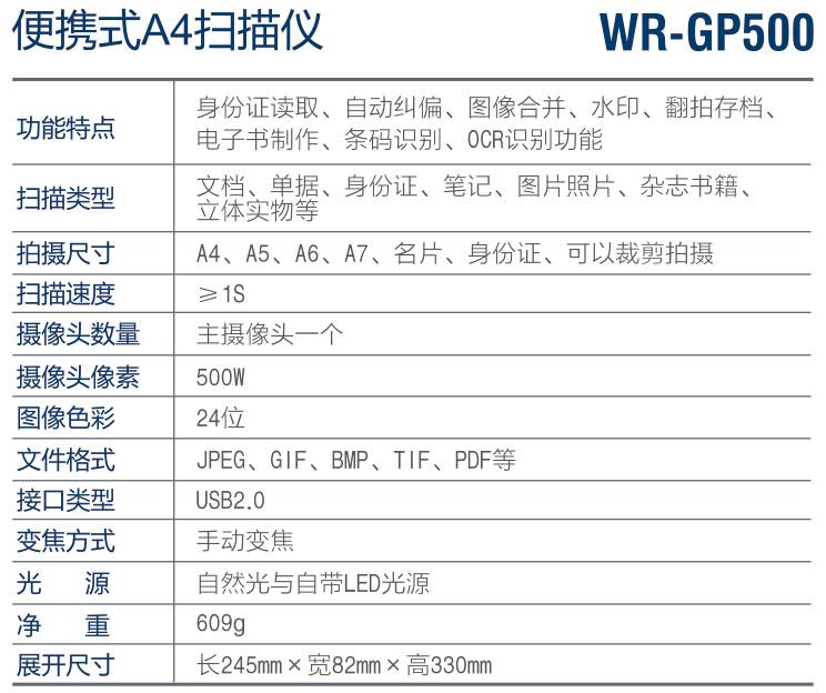 WR-GP500便攜式A4掃描儀