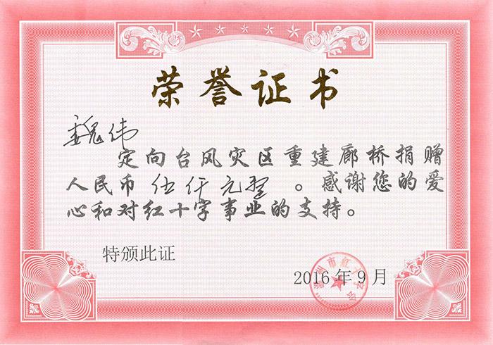 2016年臺風捐贈5000元