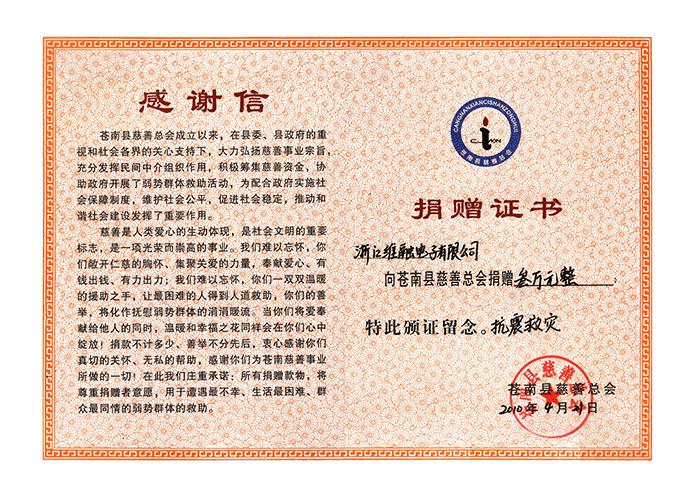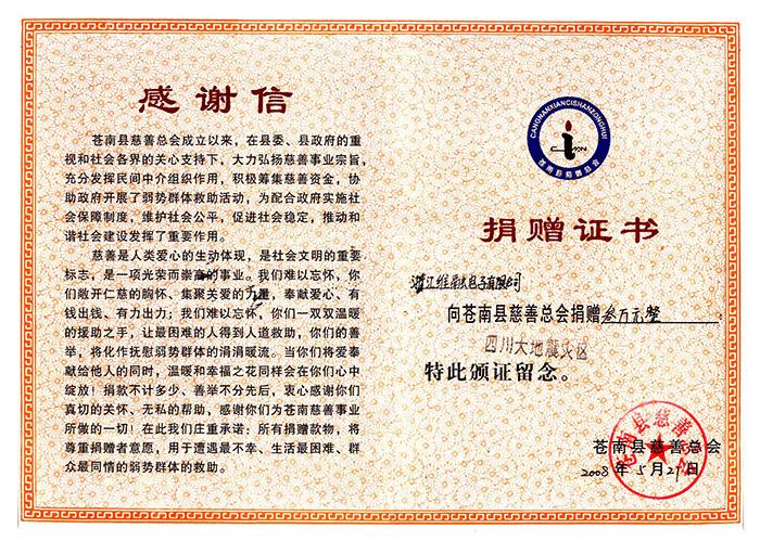 08年維融-捐贈證書