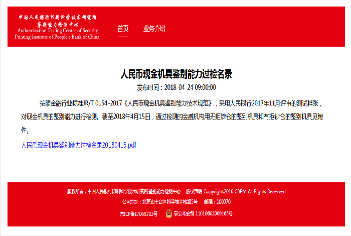 金融行業標準《人民幣現金機具鑒別能力技術規范》(JR/T 0154-2017)(簡稱“金標”)由中國人民銀行于2017年7月6日正式發布,于2018年1月1日起正式實施,它是中國首個覆蓋所有類型人民幣鑒別設備的技術標準。