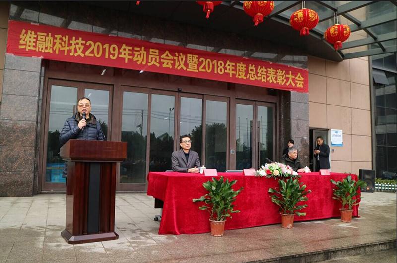 2019年2月22日早上,維融科技2019年動員會暨2018年度總結表彰會議在公司園區內召開。會議總結了2018年取得的成績和經驗,明確2019年的奮斗目標及方向,動員各部門立足實際,轉變作風、創新實干,努力開創2019年工作新局面,會議還表彰了年度優秀個人。全體在司職工共計300人參加會議。