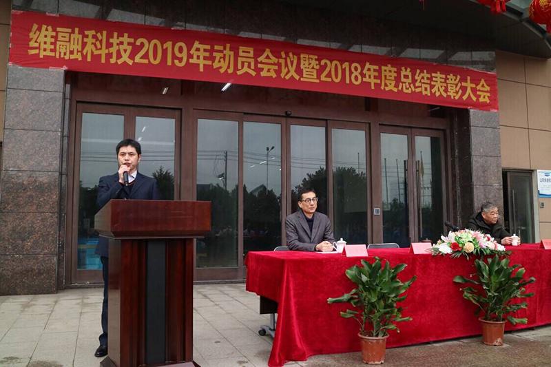首先,公司董事長兼總經理魏偉作《2018年報告》。魏董在報告中,總結了公司2018年主要工作完成情況,分析了工作中存在的不足,部署了2019年重點工作,并對企業管理、技術研發、智能制造、人力資源、企業文化提出明確要求。