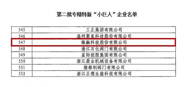 近日,國家工業和信息化部公布的第二批專精特新“小巨人”企業名單中,維融科技股份有限公司成功上榜,實現蒼南縣國家專精特新“小巨人”企業零的突破。